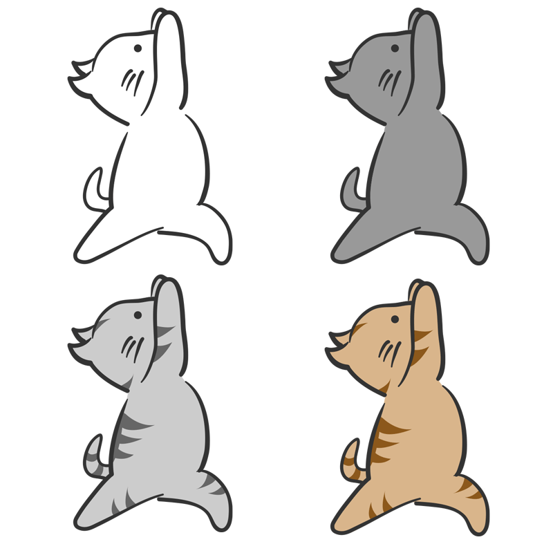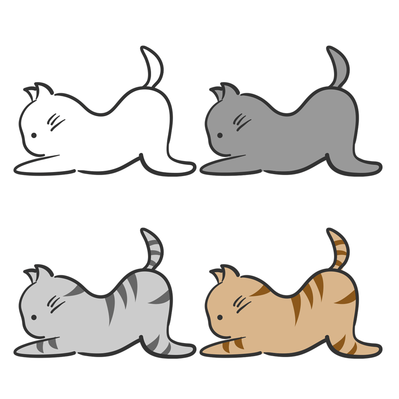 「ヨガの代表的なポーズをねこちゃんがしてるイラストがあってもおもしろいかも」と先生からアドバイスをいただき、この度無料イラスト素材サイト「ヨコハマヤ素材班」で、ヨガのポーズをしてるつもりのねこちゃんイラストの配布をスタートしました。