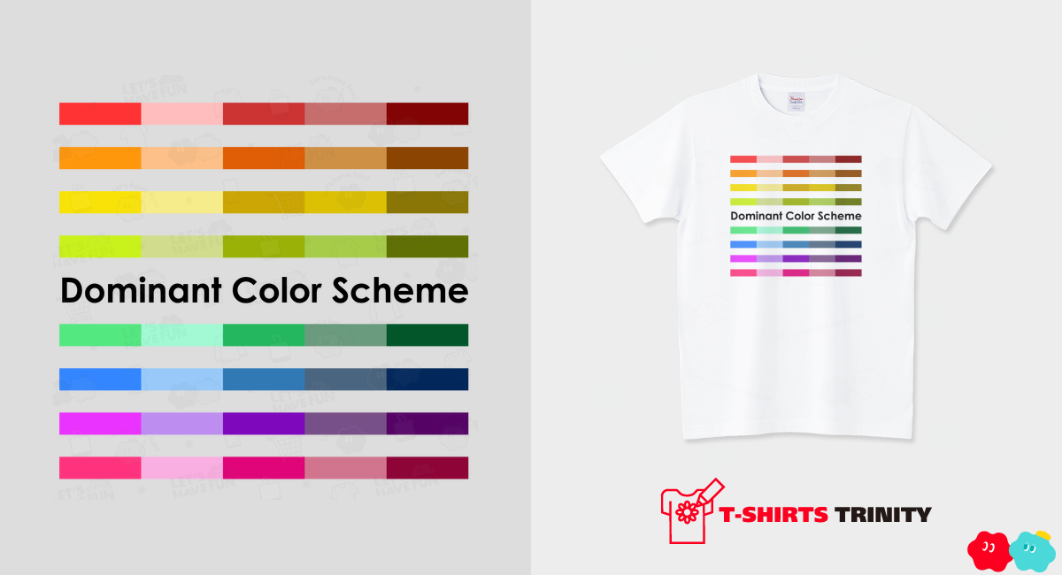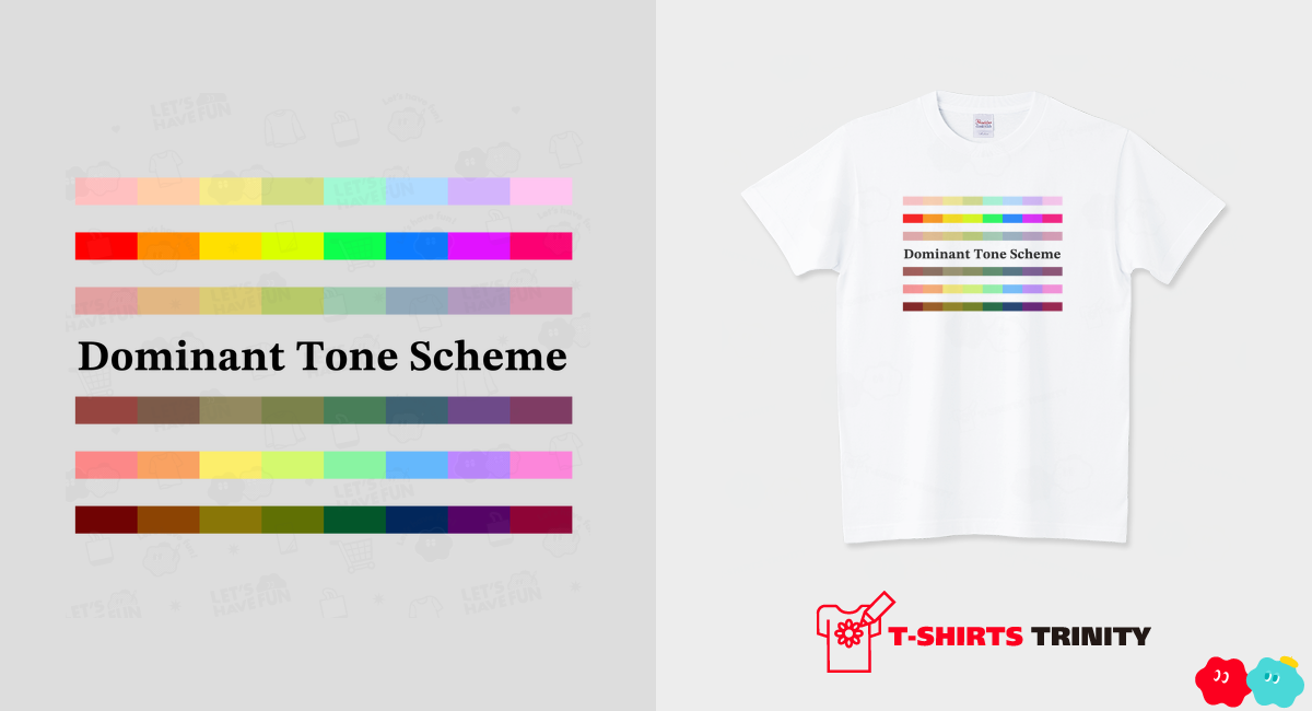 わかりやすいかな?と思い、「ドミナント・カラー配色」と「ドミナント・トーン配色」のTシャツを作ってみた。